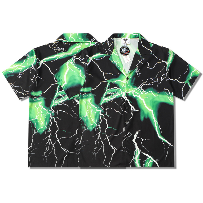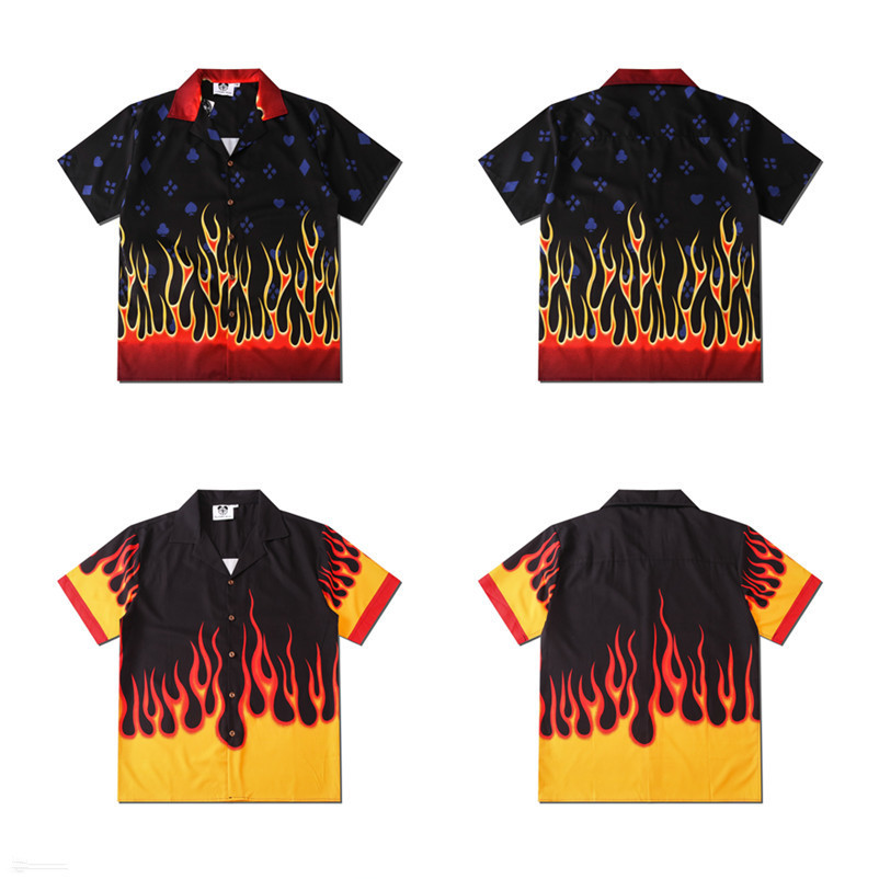 Fashion Retro Flame Print Short Sleeve Shirt