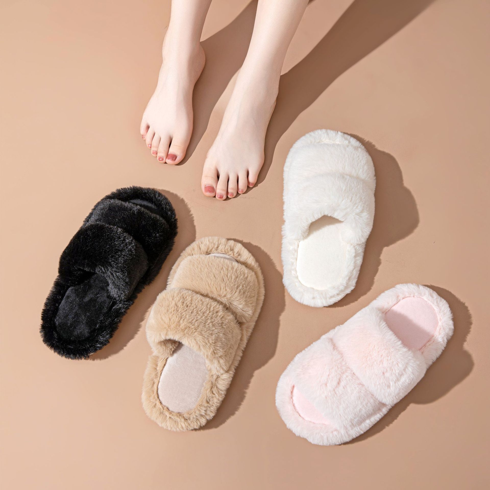 Parallel Bars Solid Color Cotton Slippers Women’s Home Plush