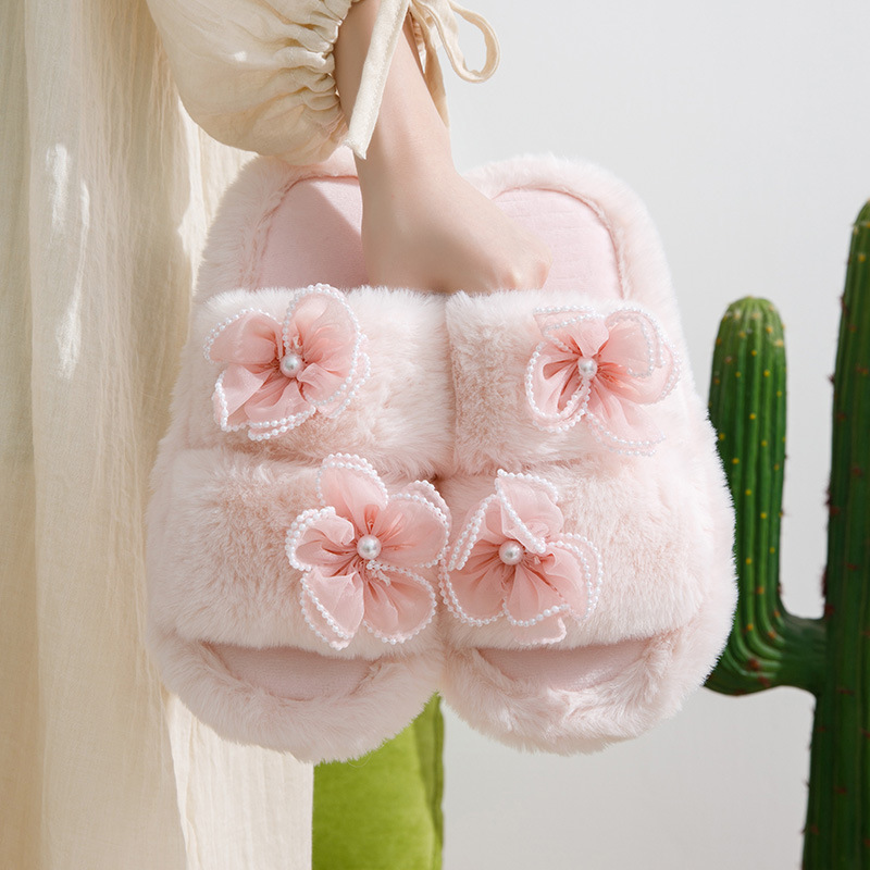 Women’s Flower Parallel Bars Cotton Slippers Indoor